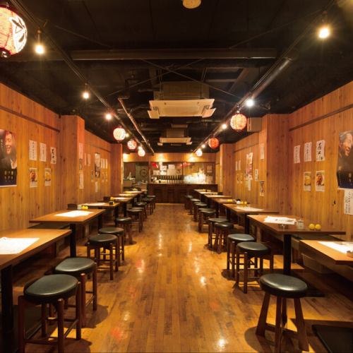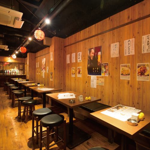 【女子会・グループ宴会】昭和レトロな内観。木のぬくもりが温かい大衆酒場は、どこか懐かしさを感じる世代にも新しさや映えを感じる世代にも大変人気です。通路が広いので、車椅子やベビーカーでのご入店も可能!全席禁煙でお子様連れでも安心です◎テーブル席でまったり女子会やママ会ランチにもお気軽にご利用ください♪